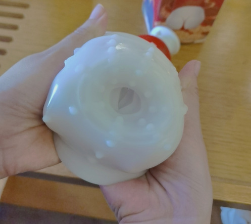 关键的一步来咯,拖着把雷霆暴风臀感杯的内胆取出来,这个大肉臀比普通的飞机杯大了一大圈,真sexy。用手握住挤压内胆,真的特别软,就好像在捏棉花糖一样,duang duang ~~~各种揉都很舒服,不硬,据说这个是TPE材质,相对是仿真人体肤质的,用手指塞入也比较舒服。 Q~MV0<{